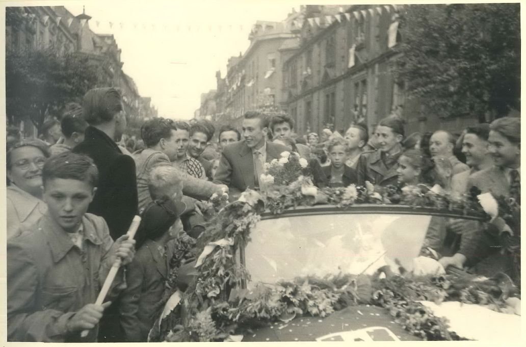 Horst Eckel beim Triumphzug durch Kaiserslautern, Juli 1954 (Stadtarchiv Kaiserslautern, Fotoslg.)